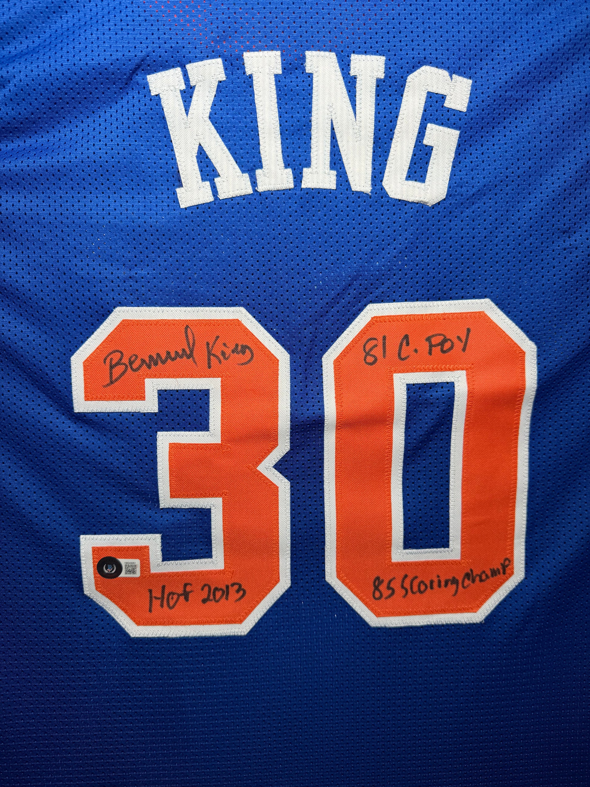 Maillot "HOF 2013-85 Scoring Champ-81 C ROY"Custom Domicile New York Knicks signe par Bernard King certifie par Beckett