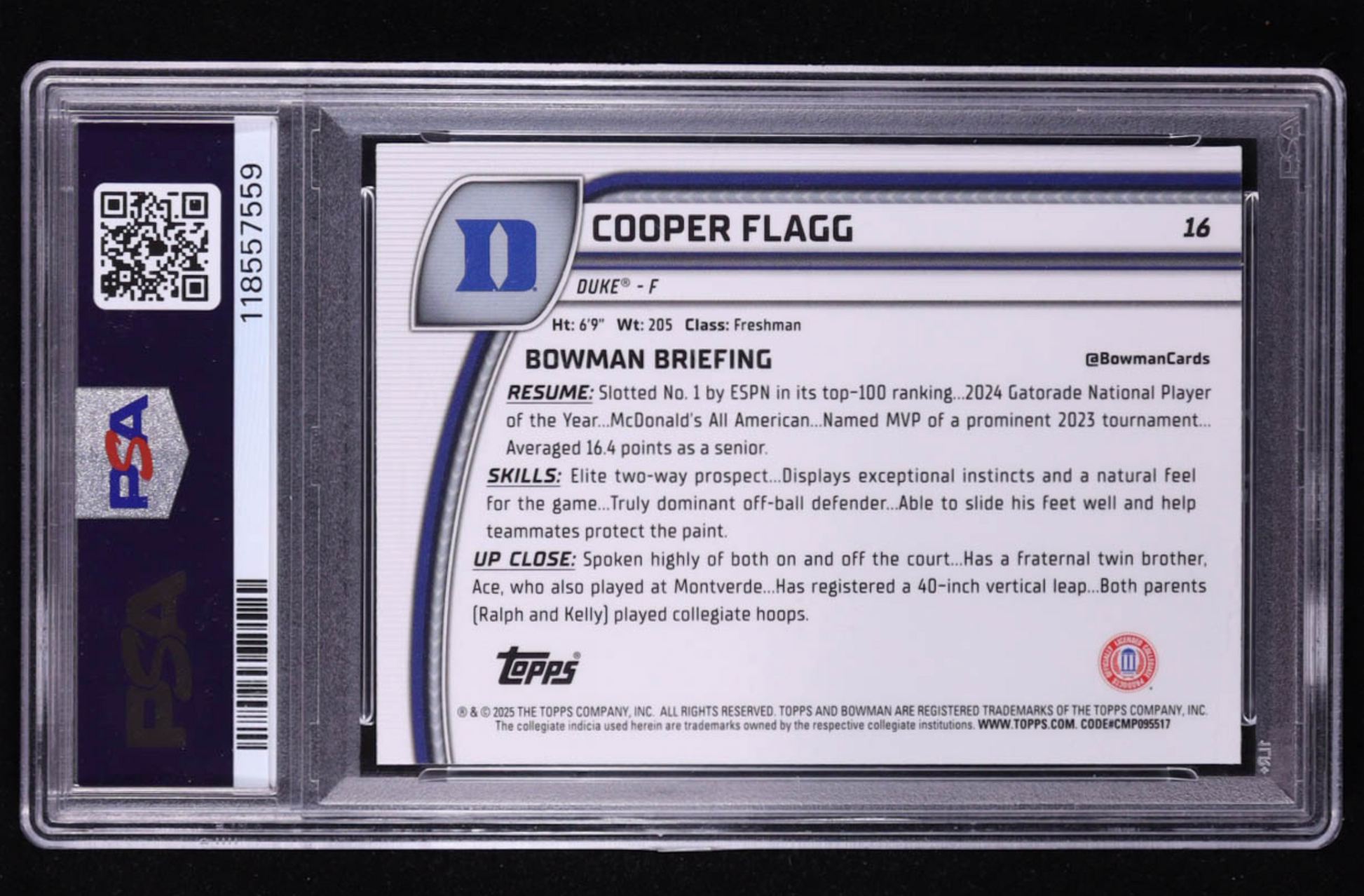 - Cooper Flagg 2024-25 Bowman Chrome University Purple Lava Refractors #16 RC (PSA 9)