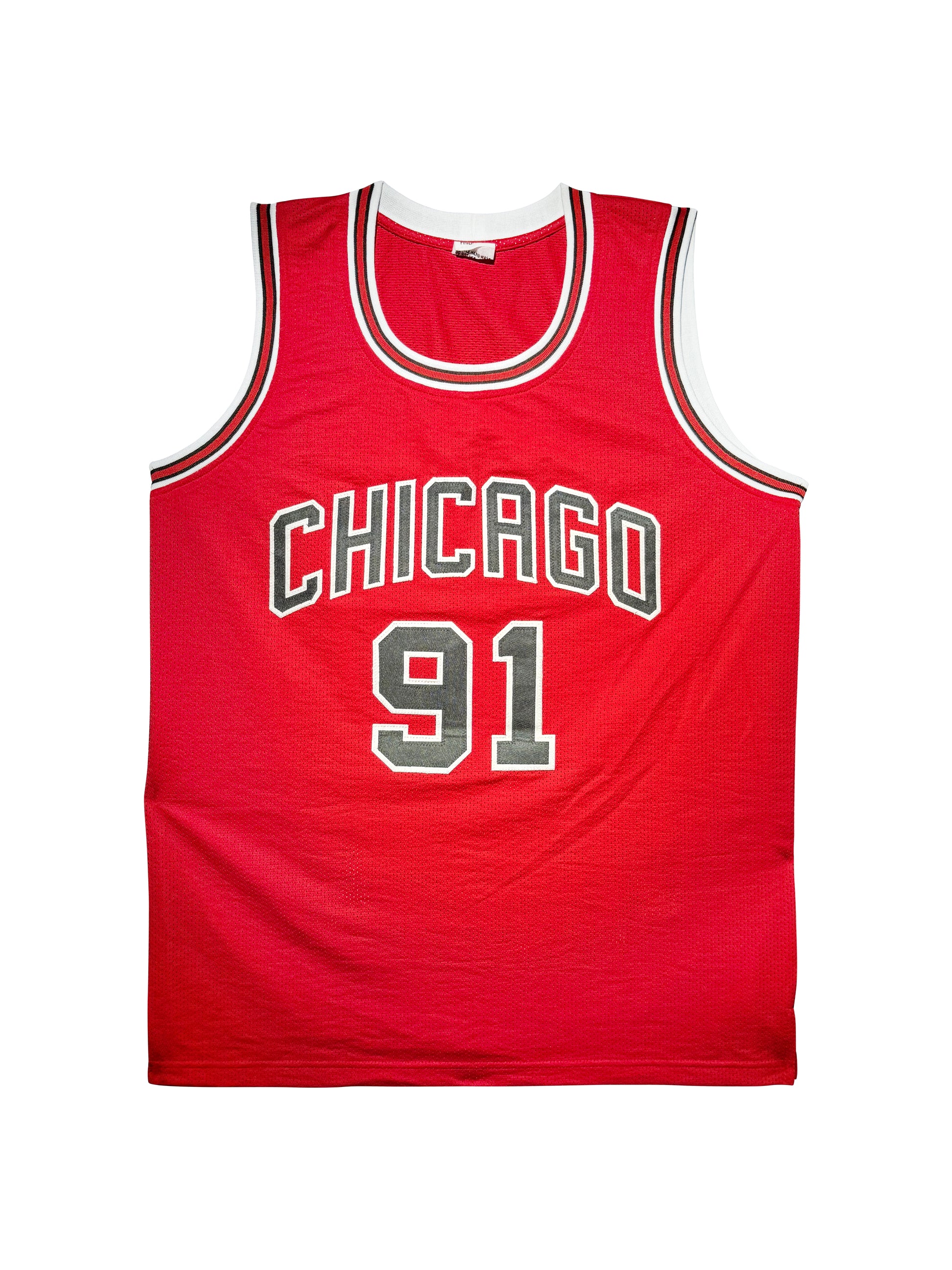 This Career Highlight Stat jersey features Dennis Rodman's signature alongside his career statistics. The Bulls jersey celebrates "The Worm's" legendary rebounding dominance with seven consecutive rebounding titles, five NBA championships, and eight All-Defensive First Team selections. This piece showcases Rodman's complete statistical legacy, from his unprecedented rebounding averages to his championship contributions across multiple teams.