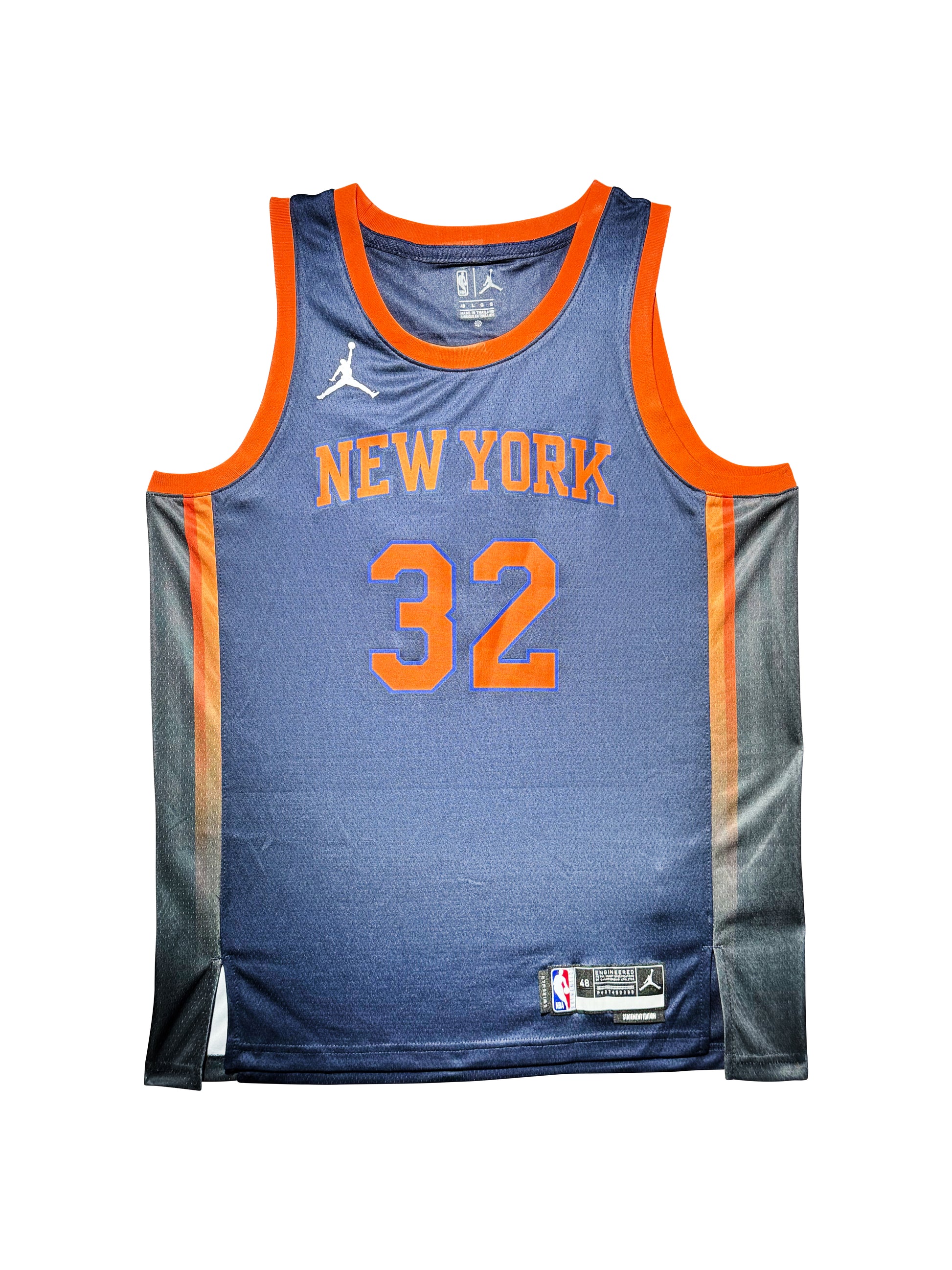 This authentic New York Knicks jersey features Karl-Anthony Towns' signature, representing his highly anticipated arrival at Madison Square Garden following his blockbuster 2024 trade from the Minnesota Timberwolves. The jersey celebrates Towns bringing his elite shooting ability and versatile scoring to the Knicks, where his rare combination of size and perimeter skills adds a dynamic offensive dimension to the franchise's championship pursuit.